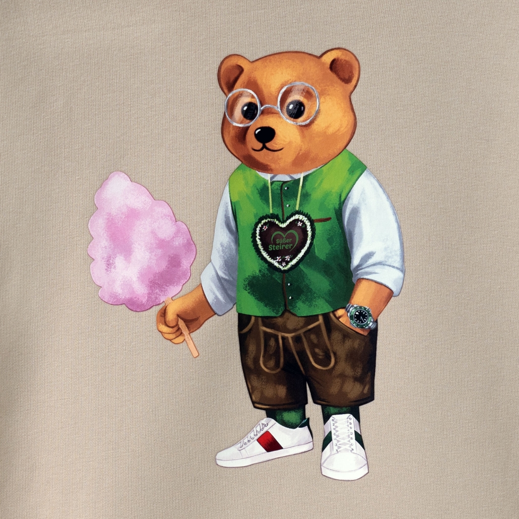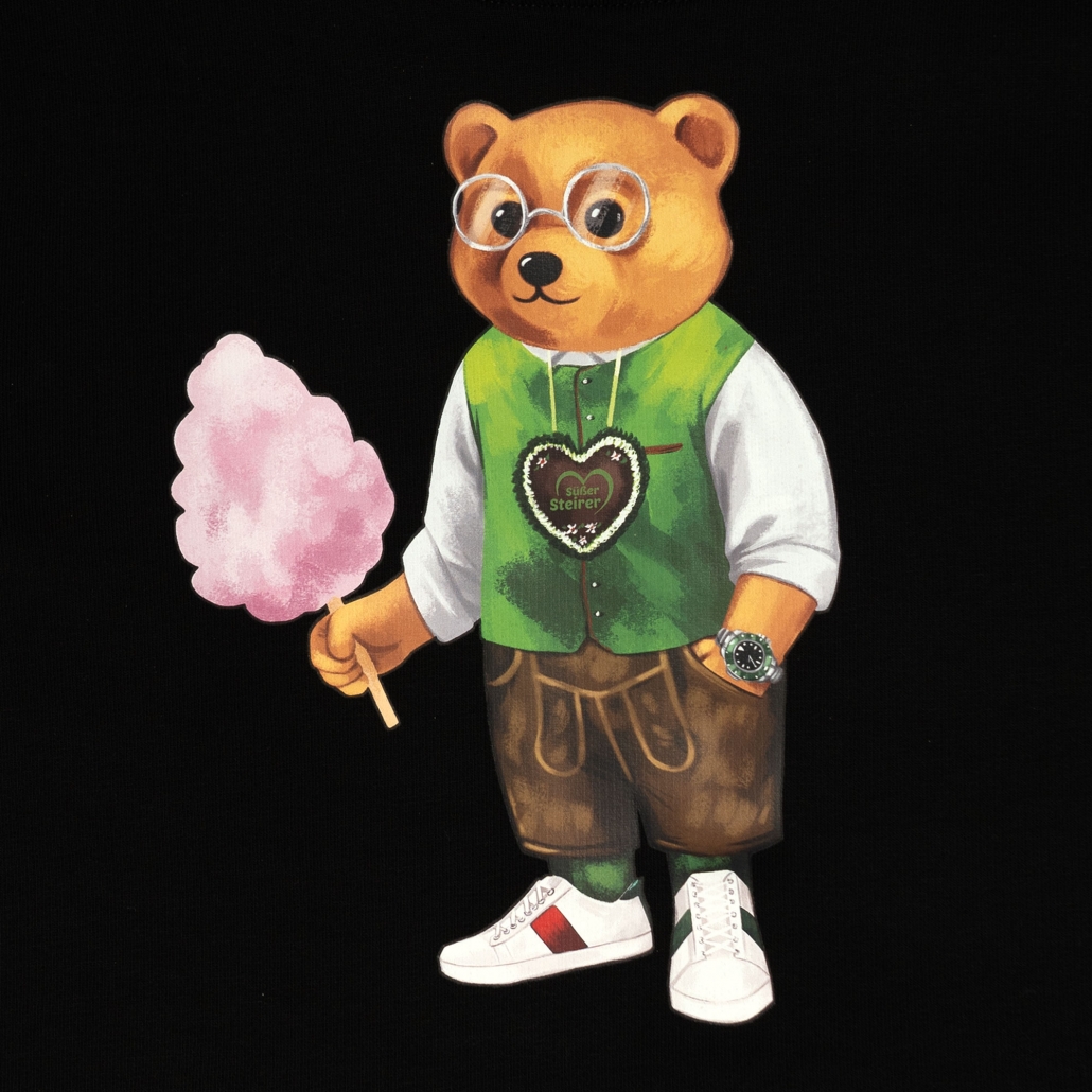 Unser Bio-Hoodie wird dein neues Lieblingskleidungsstück sein. Der Hoodie hat lange Ärmel, eine Kängurutasche, um deine Hände warum zu halten, eine Kapuze mit Kordelzug und 1×1-Rippstrick am Ärmelsaum und am unteren Saum. Vorne in der Mitte befindet sich der Süße Steirer Filou-Print. Für ein weiches Gefühl besteht die Innenseite des Hoodies aus gekämmter Baumwolle.